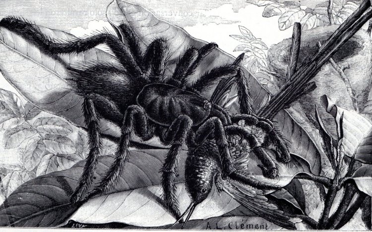 Escribió el viajero francés Eduardo André, reconocido botánico, que mientras se deleitaba observando la enmarañada espesura de la selva vio encantadores pájaros mosca o colibríes que cruzan los aires lanzando su diminuto chillido, y descubrió uno que se posó en una rama donde tenía su nido y anotó que “me acerqué con cautela y al apoyarme en el tronco de la higuera para cogerlo, una monstruosa araña (Mygale avicularia), se precipitó sobre él agarrándole por el cuello. En un abrir y cerrar de ojos me lancé sobre el repugnante bicho, que abandonó su presa para saltarme a la cara y picarme al lado izquierdo del cuello. Con todo conseguí cogerla y matarla; y a pesar de aplicarme instantáneamente un poco de agua fenicada en la picadura, se me formó un tumor, cuya cicatriz conservaré toda la vida”.