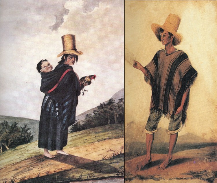 La ruana con agujero para la cabeza fue traída de Chile por los indios yanaconas que acompañaron al conquistador Sebastián de Belalcázar. Y en el siglo XVI, cuando ya había suficientes ovejas y lana para el mercado, se fabricaron mantas de este material y se les hacía el agujero para meter la cabeza; se llamaron ruanas porque el tejido era parecido a los famosos géneros de Ruán. El poncho elaborado en lana y con hueco, es peruano, boliviano, chileno y argentino.