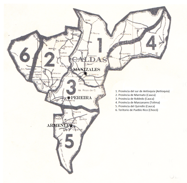 Esta región se formó a lo largo del siglo XIX; en el año 1800 existían varias poblaciones coloniales, aunque en decadencia, pero se resistían a morir; eran los pueblos de Marmato, Ansermaviejo, San Juan, Supía o Vega de Supía, Arma y Quiebralomo; la explotación de las minas de oro, las mantenían vivas y su relación económica y administrativa se ejercía desde Cartago, Ansermanuevo y Popayán. Pero, además, había numerosos pueblos de indios y resguardos; los más grandes eran San Lorenzo, Cañamomo, Guática, Tachiguía, Quinchía y La Montaña. Para esa época el territorio estaba muy despoblado y desde algunas poblaciones de Antioquia estaban mirando la región con grandes deseos de colonizarla, con el argumento de “muy pocos indios”, escasa población blanca y mestiza y en cambio, demasiado territorio.
